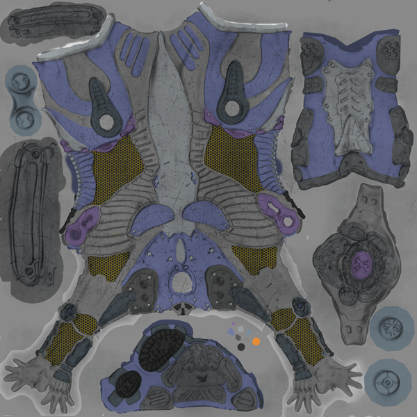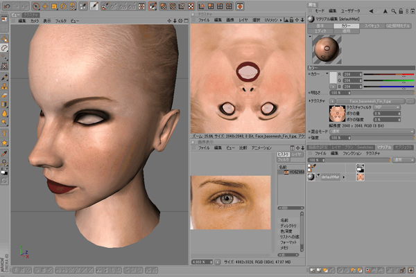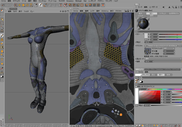 カラーマップ作成にはbodyPaint3Dを使用しています。bodyPaintで