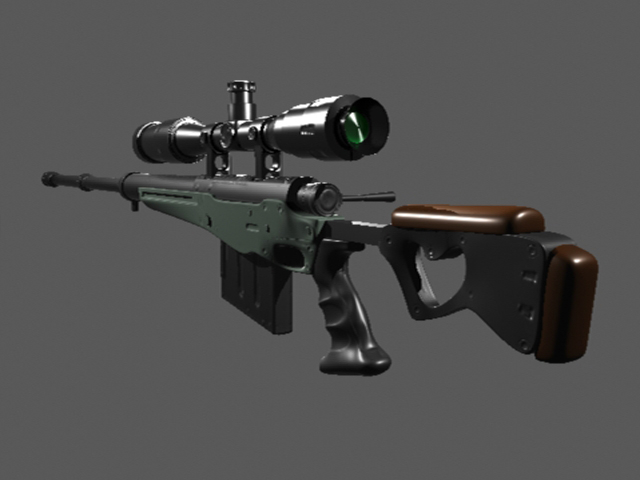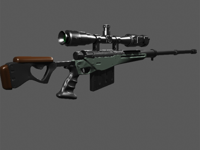 スナイパーライフルは、メンタルレイマテリアルで質感設定しています。