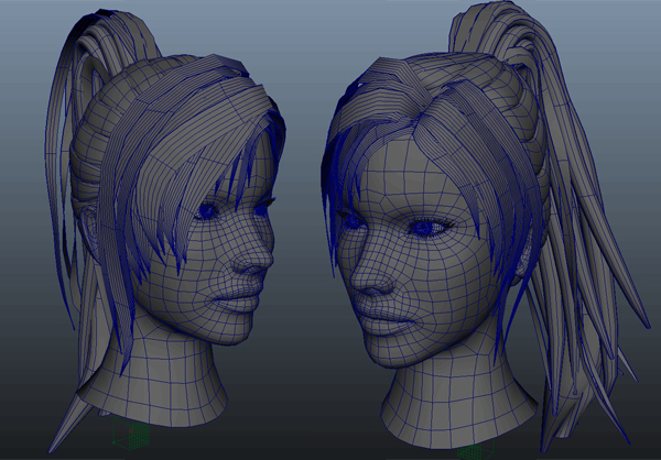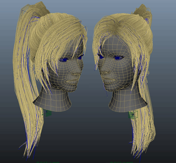 ヘアスタイルの原型をナーブスで作成しています。髪の流れをこの時点で