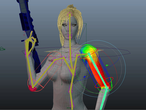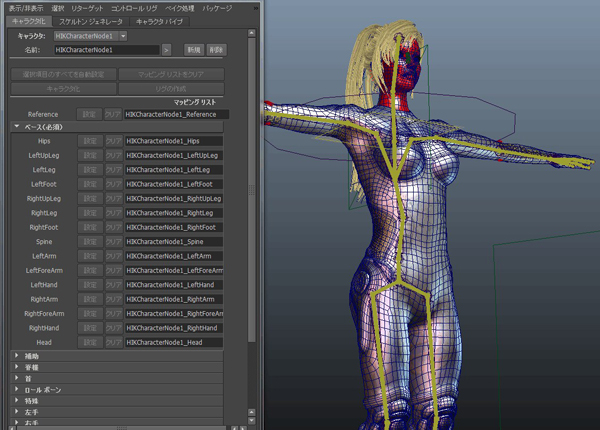Maya2011に実装されたHumanIKを使用してセットアップしています。