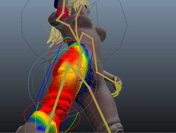 インタラクティブバインドスキンを適用しウエイト調整を行います。